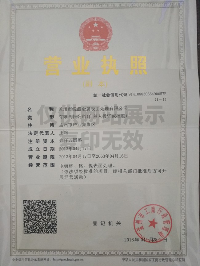 歡迎來到孟州市銳鑫金屬表面處理有限公司官方網站!